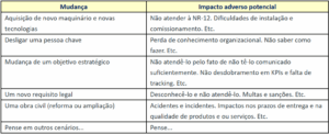 Já falamos em posts recentes sobre a importância que certas mudanças tem na organização pelo fato de, ao eventualmente envolverem impactos negativos não previstos, terem a chance de causar perdas.