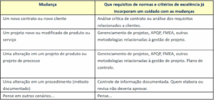 E há outros tipos de mudanças que as próprias normas internacionais e critérios de excelência anteriormente citados já preveem desde muito tempo atrás, requisitos de planejamento e gestão de mudanças nas entrelinhas. Você já havia parado para pensar nisso?